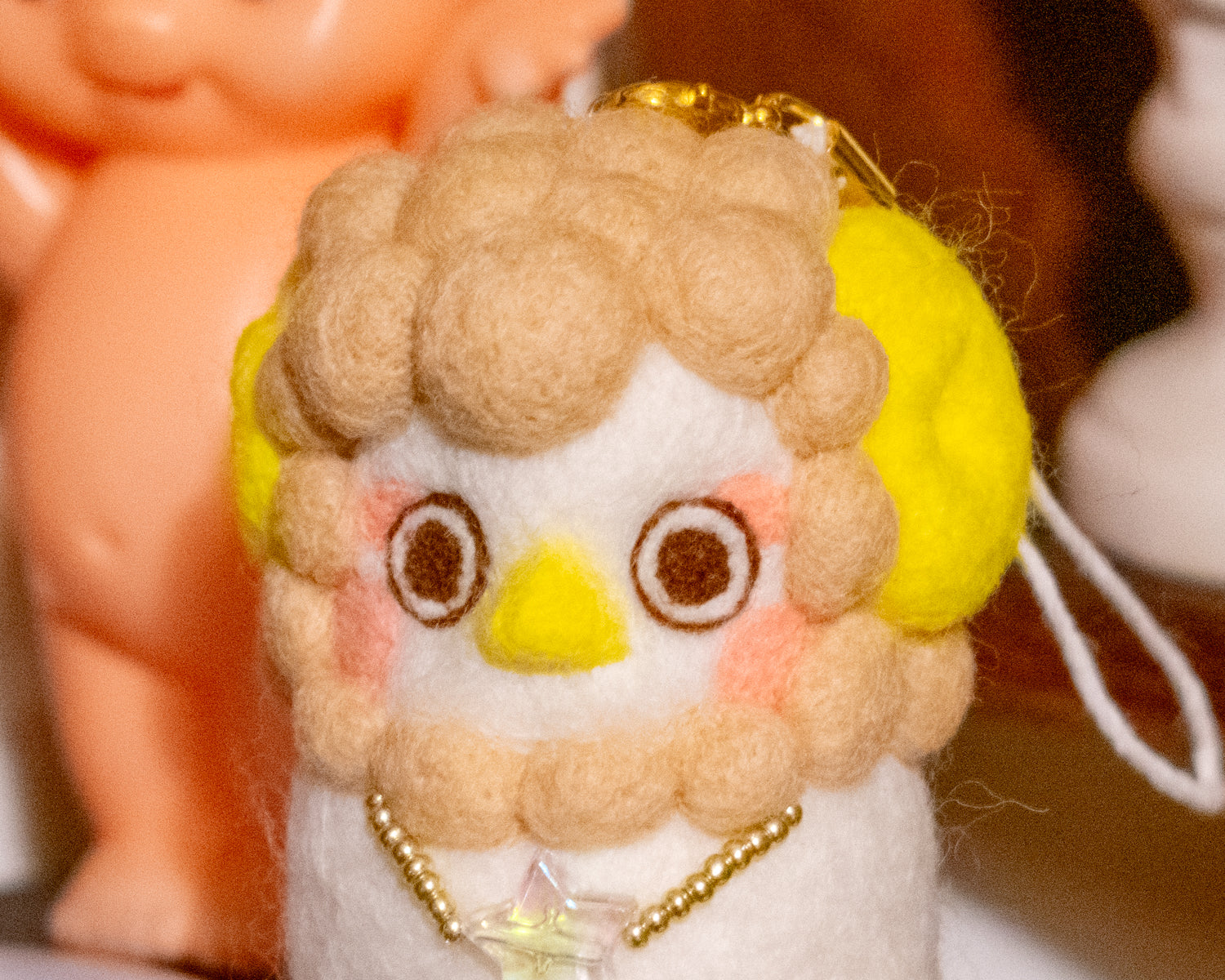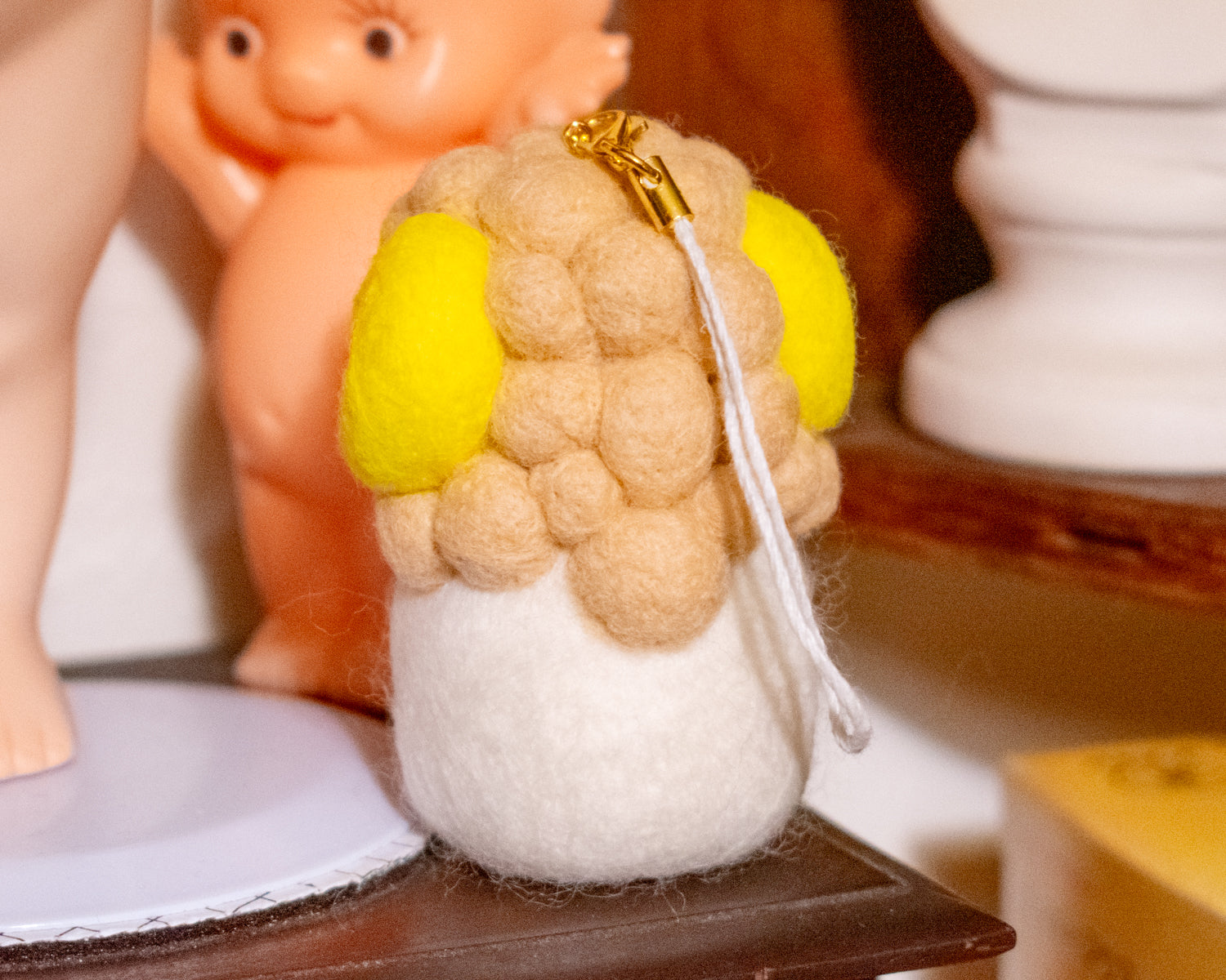 Zodiac Sign Lady Bird Needle Felted Ceramic Keychain - Aries (White Sheep ver.)