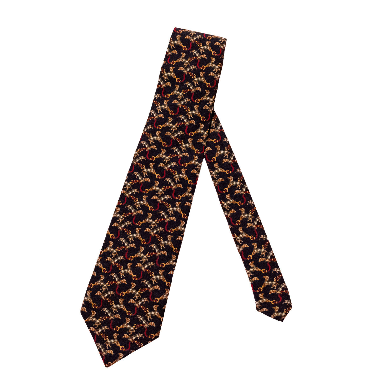 STELLA Vintage Silk Pattern Necktie - Dark Blue / Dachshund
