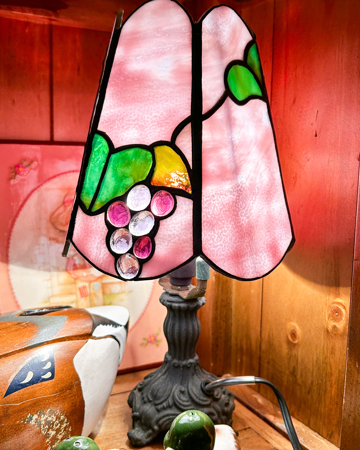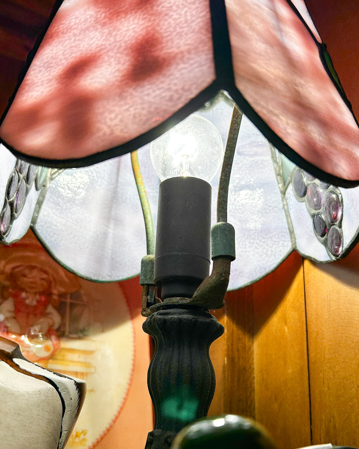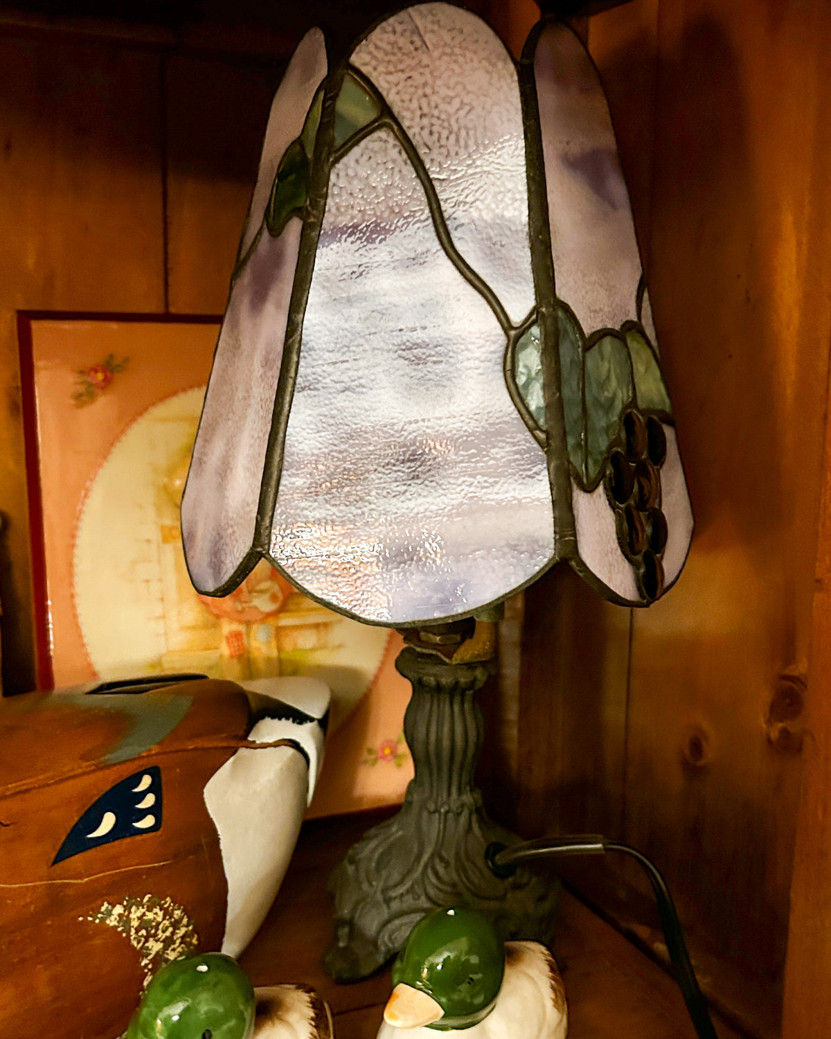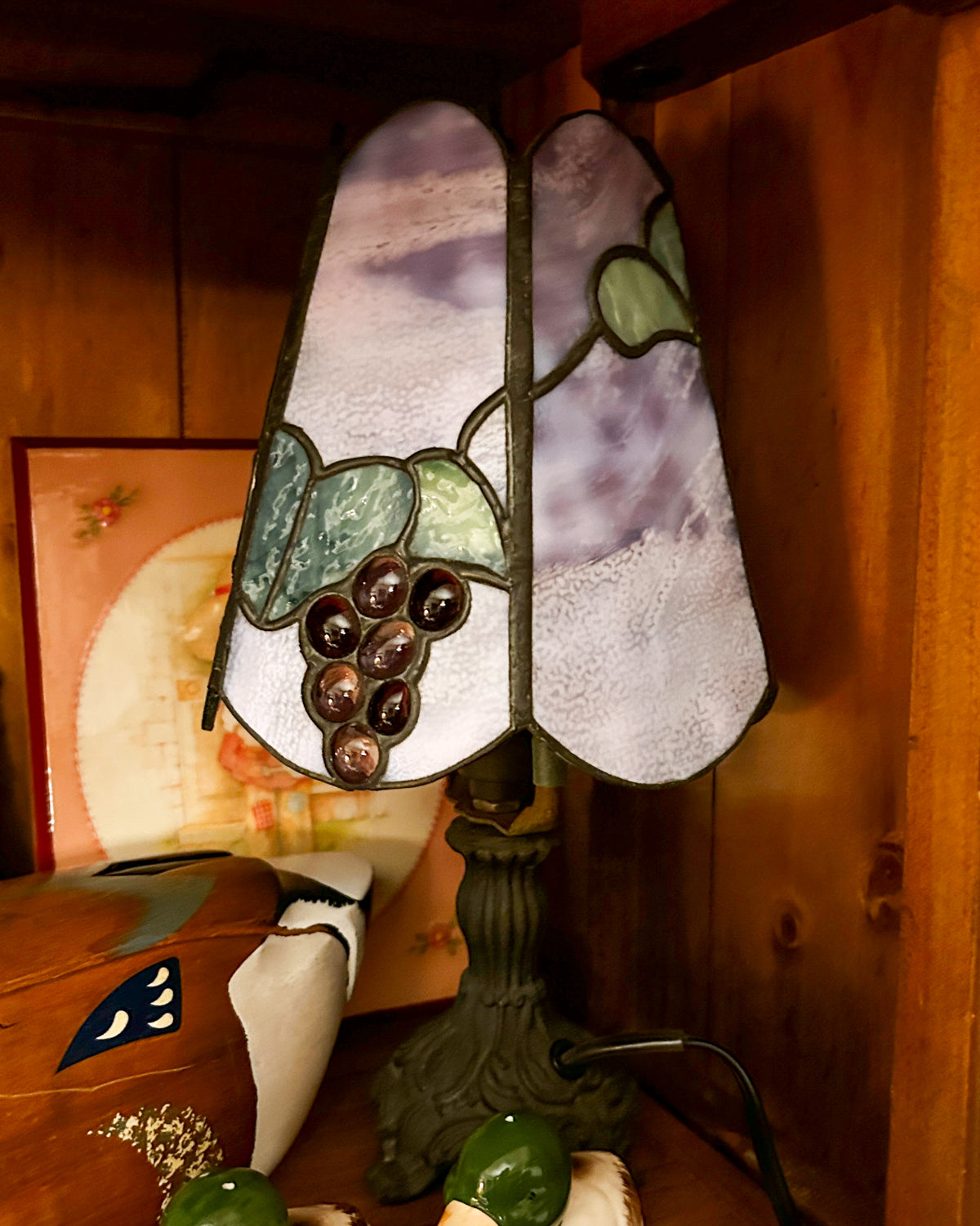 Vintage Stained Glass Table Lamp - Purple Grapes